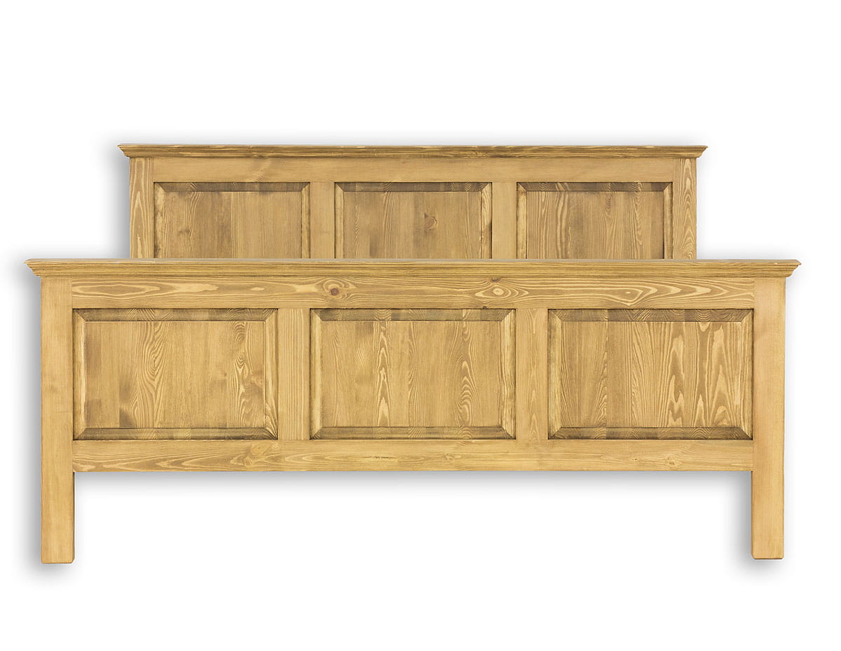 Woskowane łóżko LK701 z wysokim zagłówkiem i zanóżkiem. Zaprojektowane w stylu rustykalnym, wykonane w całości z litego drewna sosnowego. Trwała i solidna konstrukcja łóżka wzbogacona została w dekoracyjne rzeźbienia. Charakterystyczna struktura naturalnego drewna oraz ciepłe kolory, w których łóżko jest dostępne, nadadzą każdemu wnętrzu niepowtarzalny klimat, pełen ciepła i rodzinnej atmosfery. Łóżko LK701 pokryte zostało naturalnym woskiem pszczelim, który tworzy warstwę zabezpieczającą przed wilgocią, a jednocześnie pielęgnuje drewno. Dzięki zabiegowi woskowania zyskujemy uwydatnienie naturalnej struktury drewna oraz pogłębienie jego naturalnego koloru. Wosk pszczeli to produkt naturalny, a więc meble woskowane zyskują właściwości antystatyczne – na ich powierzchni osadza się mniejsza ilość kurzu. Dodatkowym atutem mebli woskowanych jest ich jedwabiście gładka powierzchnia oraz przyjemna woń naturalnego drewna.