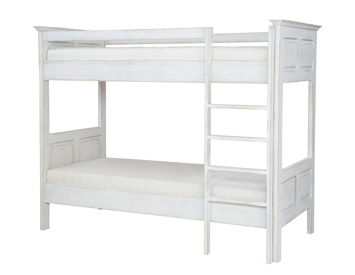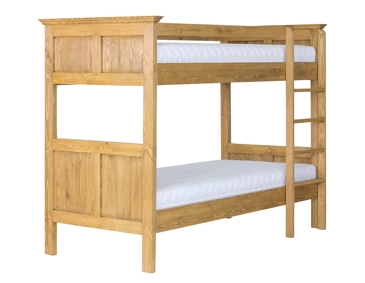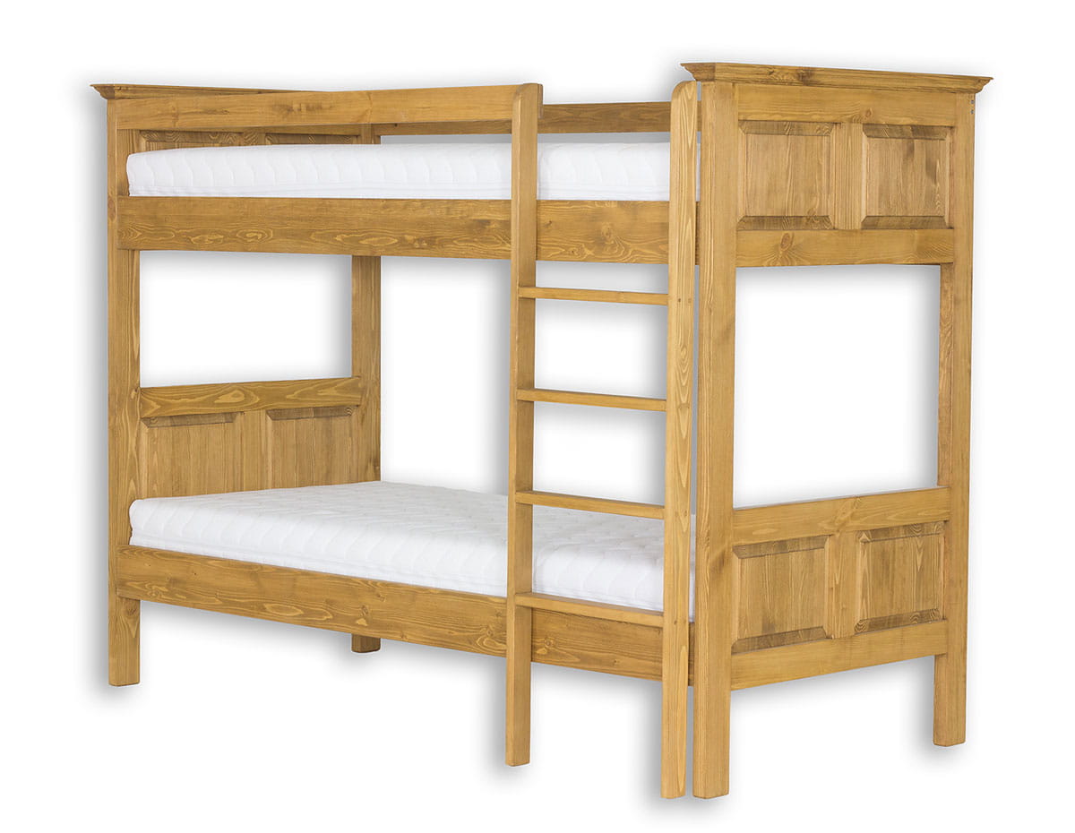 Woskowane łóżko piętrowe LK707 wykonane zostało z litego drewna sosnowego, co gwarantuje jego trwałość i stabilność. Posiada dwa oddzielne miejsca do spania, co pozwala na zaoszczędzenie miejsca w pokoju. Dostęp do górnej części łóżka zapewnia solidna drabinka umieszczona z boku konstrukcji. Naturalne wykończenie drewna nadaje meblowi ciepłego i przytulnego charakteru. Całość prezentuje się estetycznie i elegancko. Łóżko piętrowe LK707 doskonale sprawdzi się w pokoju dziecięcym lub młodzieżowym, ale również w mniejszych pomieszczeniach, gdzie liczy się oszczędność miejsca.