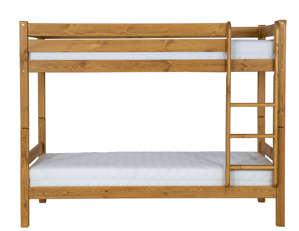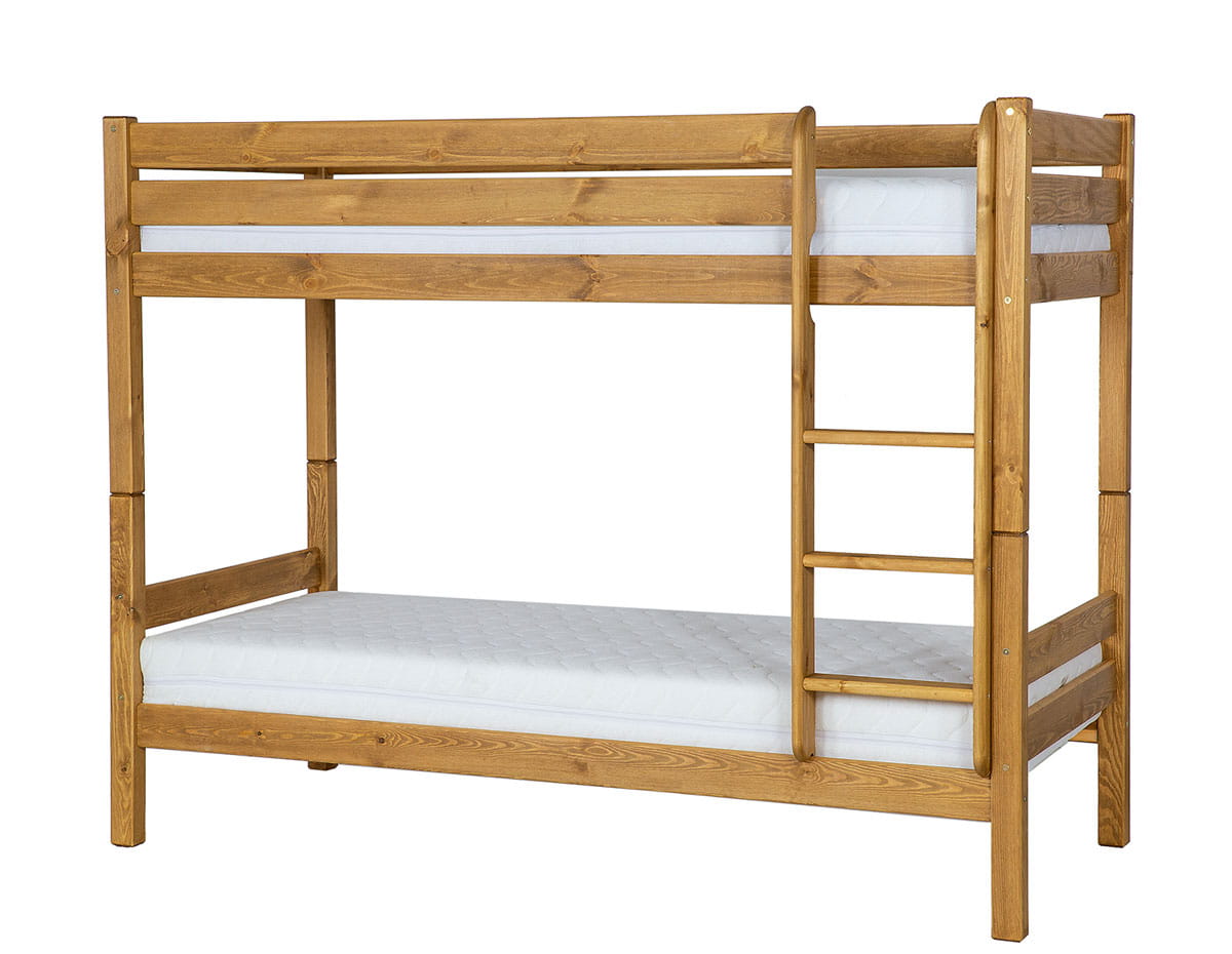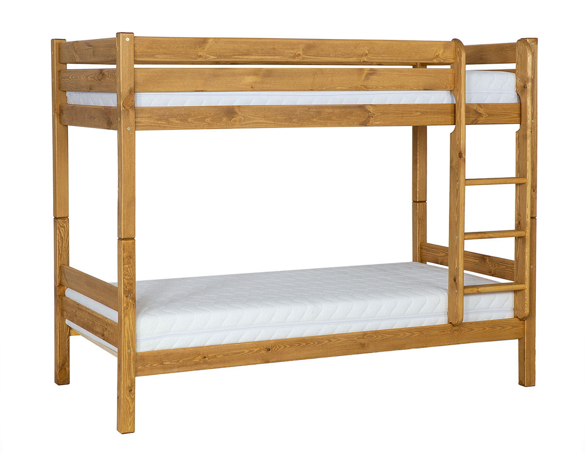 Woskowane łóżko piętrowe LK736 wykonane zostało z litego drewna sosnowego, co gwarantuje jego trwałość i stabilność. Posiada dwa oddzielne miejsca do spania, co pozwala na zaoszczędzenie miejsca w pokoju. Dostęp do górnej części łóżka zapewnia solidna drabinka umieszczona z boku konstrukcji. Naturalne wykończenie drewna nadaje meblowi ciepłego i przytulnego charakteru. Całość prezentuje się estetycznie i elegancko. Łóżko piętrowe LK736 doskonale sprawdzi się w pokoju dziecięcym lub młodzieżowym, ale również w mniejszych pomieszczeniach, gdzie liczy się oszczędność miejsca.