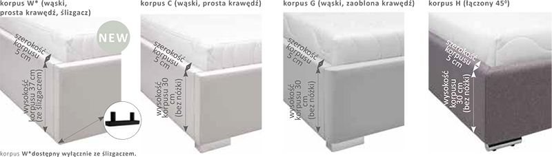 DOSTĘPNE KORPUSY ŁÓŻKA: