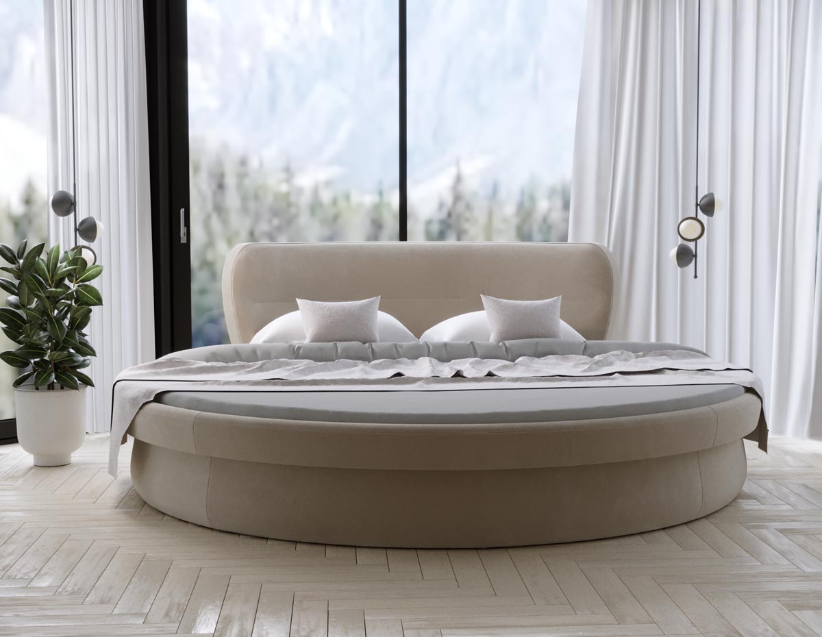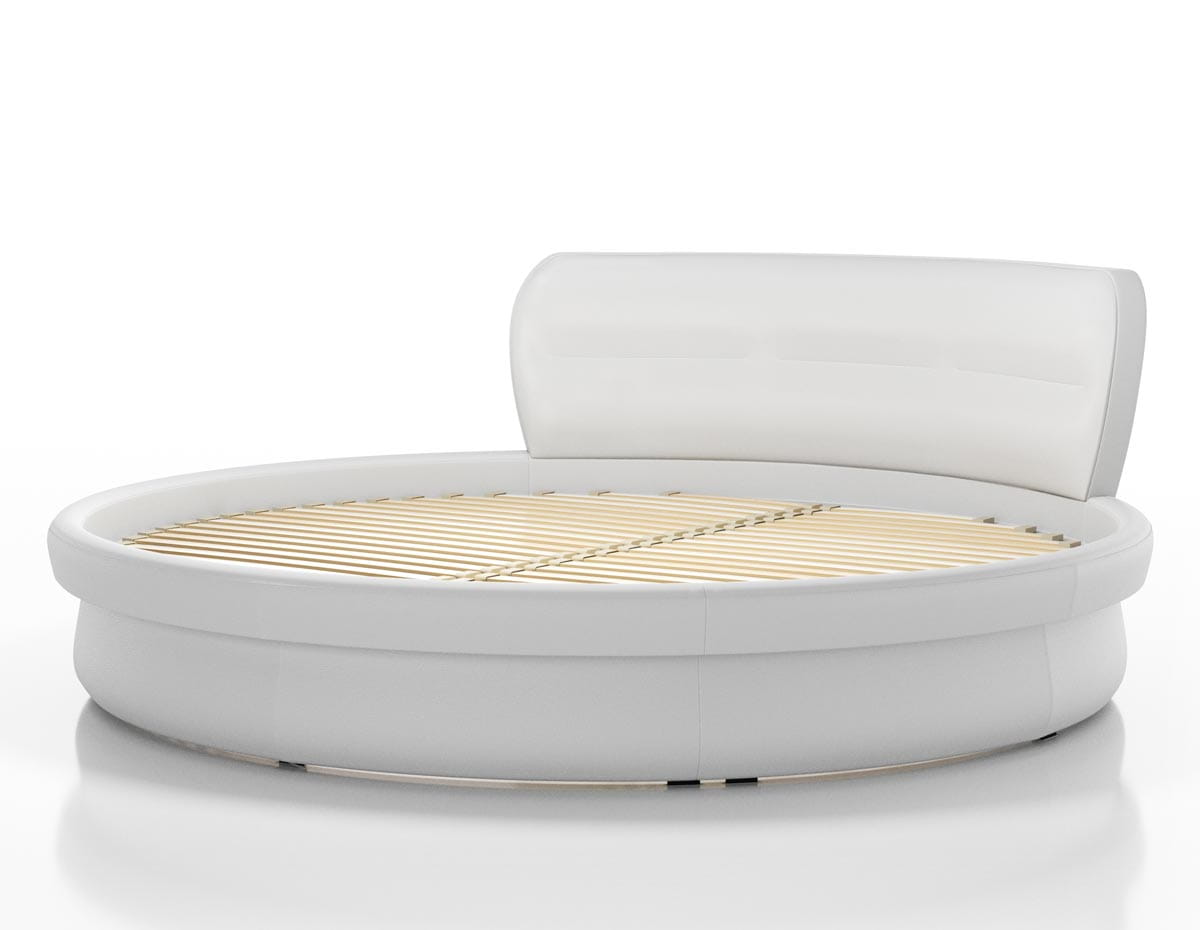 Łóżko ze stelażem wbudowanym na listwach giętych.