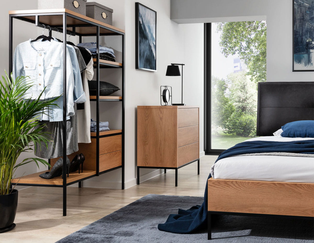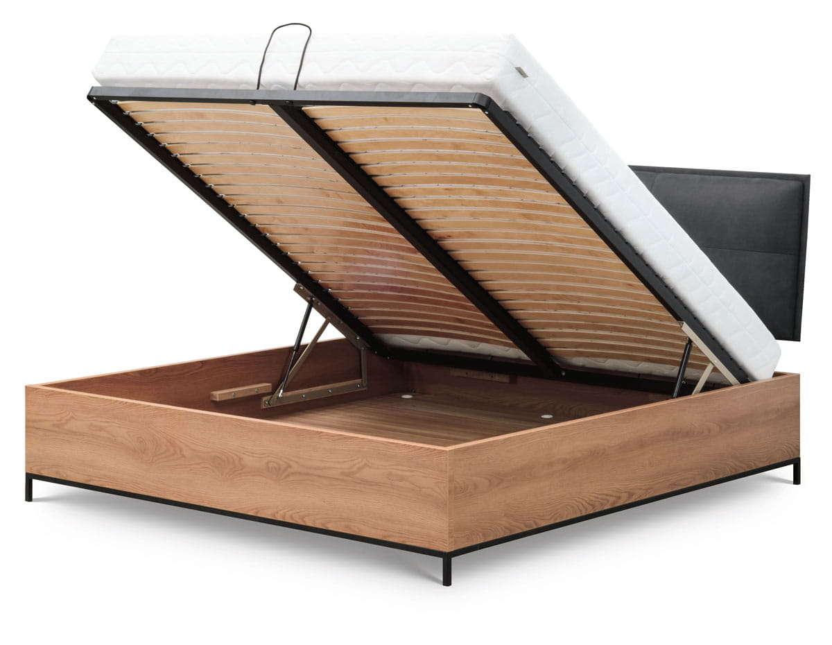 2) Łóżko z pojemnikiem oraz stelażem na ramie metalowej Standard