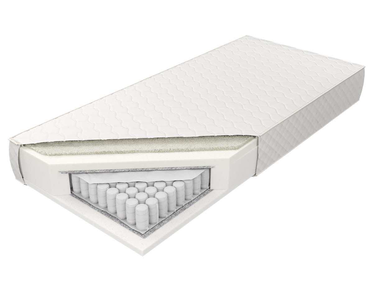 Wkład: sprężyny kieszonkowe, obłożony obustronnie przekładką tapicerską oraz po jednej stronie 40 mm pianki termoelastycznej, po drugiej stronie 30 mm pianki poliuretanowej.