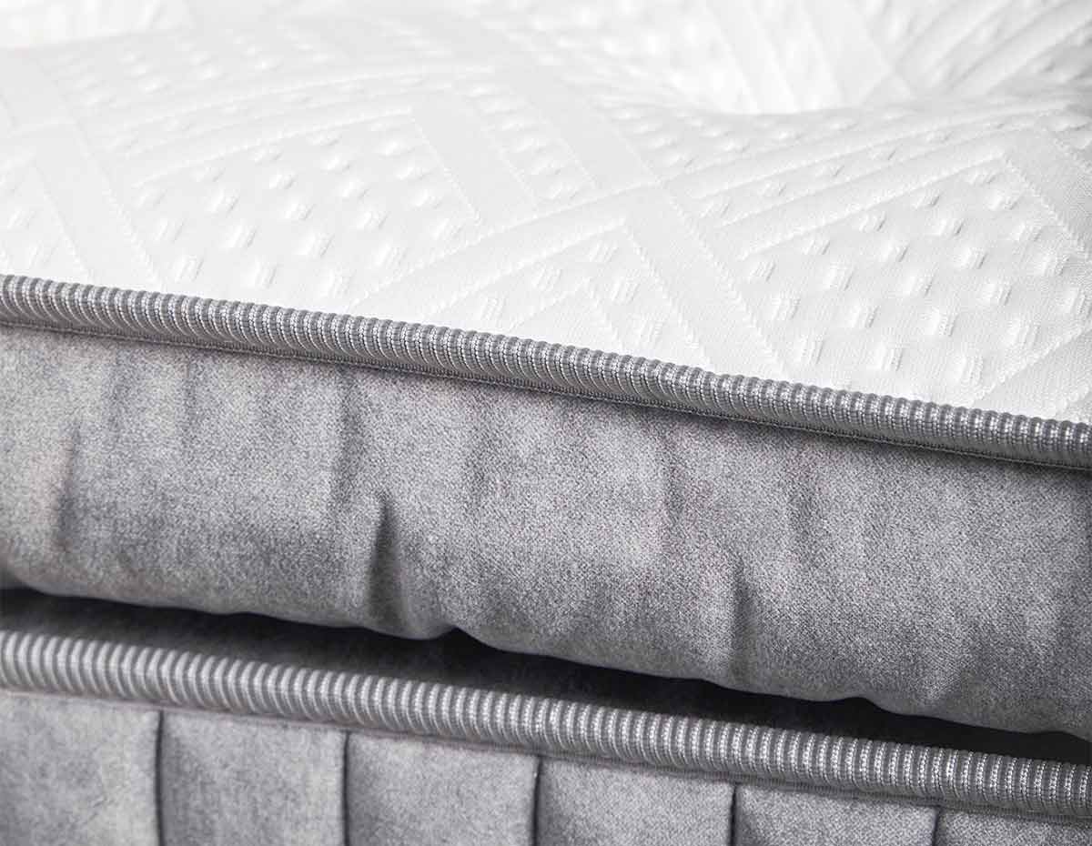 Rdzeń materaca tworzy innowacyjny system MultiPocket IntelSystem HD, który stanowi inteligentne połączenie niezawodnych sprężyn MultiPocket z warstwą MiniPocket. Ta unikalna kompozycja zapewnia luksusowe wsparcie, dostosowując się do unikalnych kształtów ciała, gwarantując optymalny komfort. W górnej warstwie znajduje się pianka SuperSoft, która jest niezwykle miękka, a jednocześnie trwała i elastyczna. Jej zadaniem jest równomierne rozłożenie nacisku ciała oraz nadanie materacowi sprężystego i miękkiego komfortu. Jest to idealny wybór dla tych, którzy często zmieniają pozycję w trakcie snu. Pianka TigerTouchTM nadaje materacowi sprężystości i twardości, zapewniając dynamiczne i aktywne wsparcie. Dodatkowo, materac został wzbogacony o warstwę Pillow Top. To dodatkowy topper będący integralną częścią materaca. Wypełniony warstwą miękkiej, puszystej włókniny oraz pianki dostarcza ekstra porcję komfortu. Otello, oprócz wyjątkowej miękkości uzyskanej dzięki połączeniu najlepszych surowców, zapewnia najwyższy poziom relaksu dla użytkowników o różnych sylwetkach i preferujących różne pozycje snu.