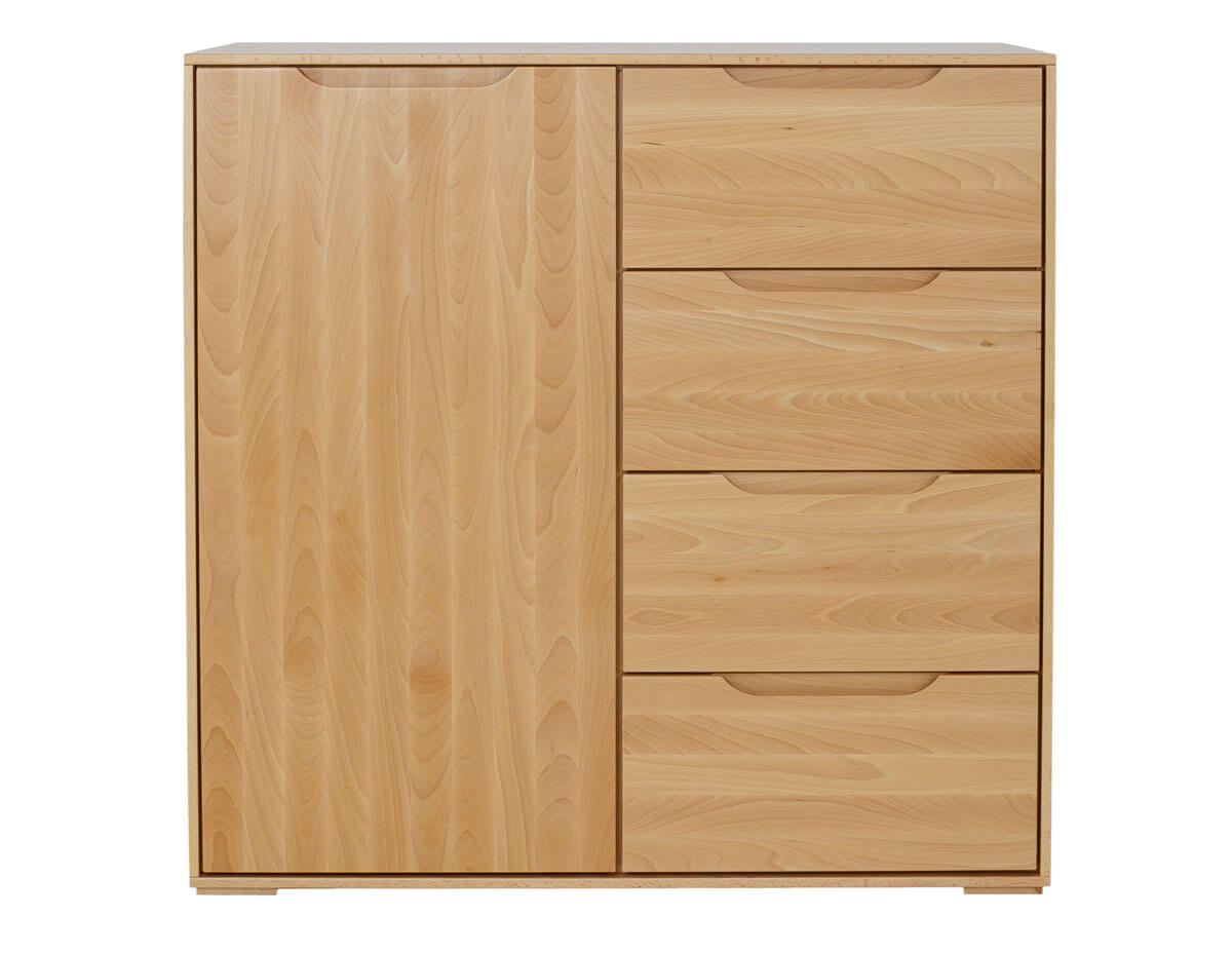 Kolekcja mebli bukowych to minimalizm w klasycznym i modnym wydaniu. Proste bryły, estetyczne rzeźbienia frontów oraz bez uchwytowe szuflady dodają im uroku, sprawiając jednocześnie, że meble zyskały ponadczasowy charakter. Widoczne usłojenie naturalnego, bukowego drewna, z którego powstały nadaje im elegancji i szyku.