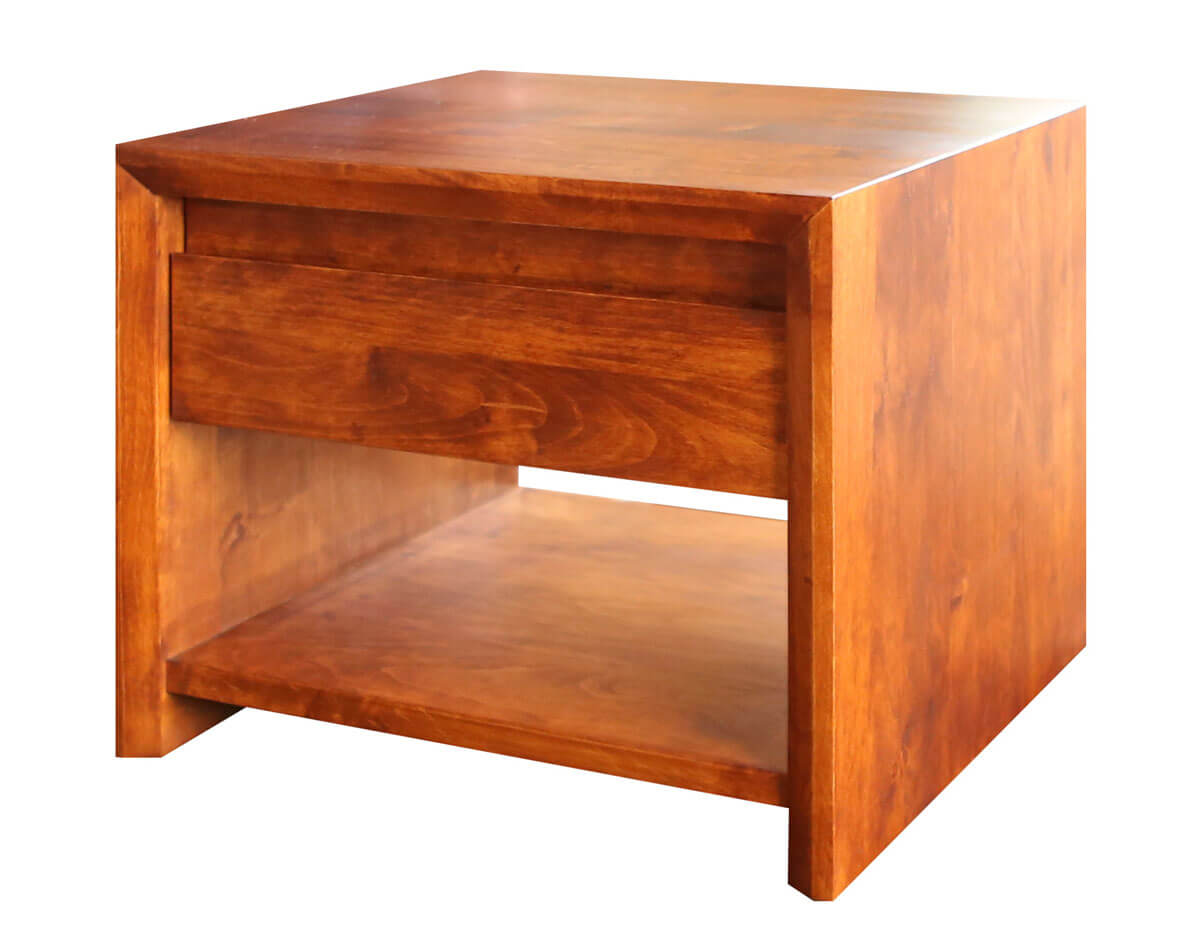 Szafka M-Forma z półką to wolnostojąca szafka wykonana z drewna olchowego lub dębowego, z jedną szufladą umiejscowioną pod blatem i dolną półką. Szuflada zamontowana jest na prowadnicach kulkowych z cichym domykiem. Front szuflady posiada frezowany uchwyt, który ułatwia ich otwieranie. Dolna półka daje dodatkowe miejsce do wykorzystania.