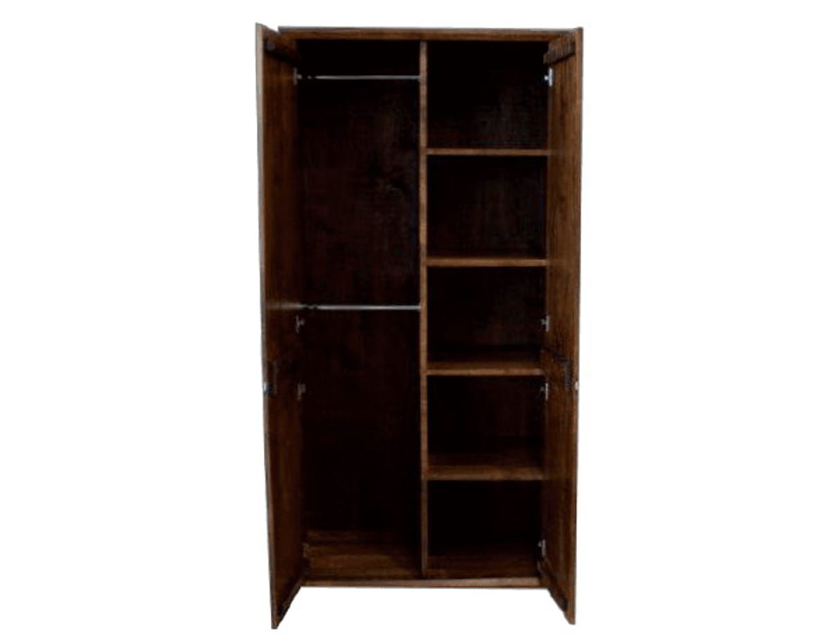 Wnętrze podzielone, na pół – z jednej strony półki, z drugiej drążki.