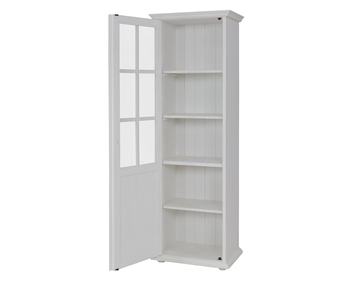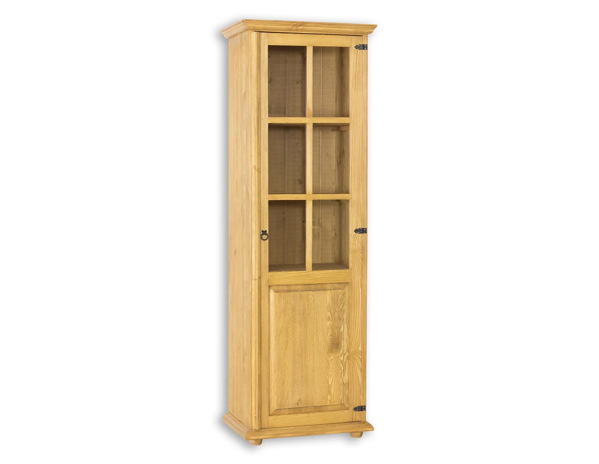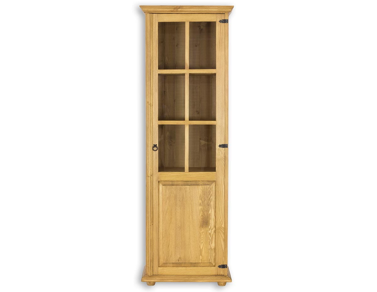 Woskowana witryna KW717 zaprojektowana w stylu rustykalnym, wykonana w całości z litego drewna sosnowego. Witryna w całości, posiada podzielone drzwiczki na dwie części. Górna część mebla posiada przeszklone drzwi oraz dwie półki w środku. Dolna część natomiast składa się z zabudowanych drzwi, za którymi umieszczona jest jedna półka. Mebel posiada trwałą i solidną konstrukcję. Do produkcji zostały wykorzystane ręcznie wykonywane metalowe uchwyty i zawiasy z efektem postarzenia. Witryna KW717 nada każdemu wnętrzu niepowtarzalny klimat, pełen ciepła i rodzinnej atmosfery. Dzięki jej funkcjonalności przechowywanie stanie się o wiele prostsze.